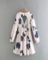 New Spring Women Elegant Floral Print Sashes Shirt Dress Female Long Sleeve...
