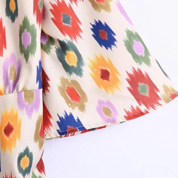 Hot Sale Women Geometric Print Knot Decoration Mini Dress Female Long Sleeve...
