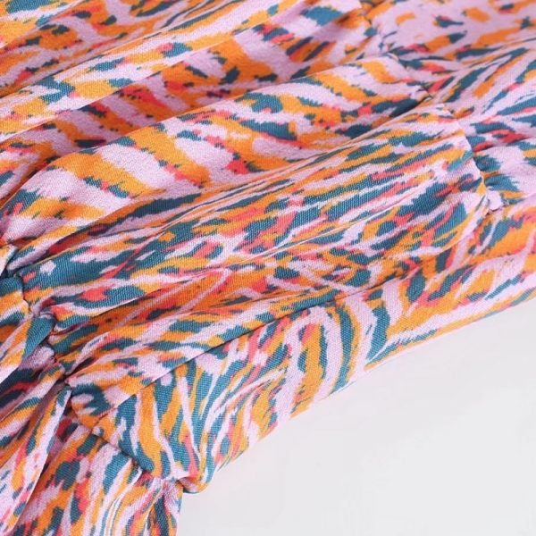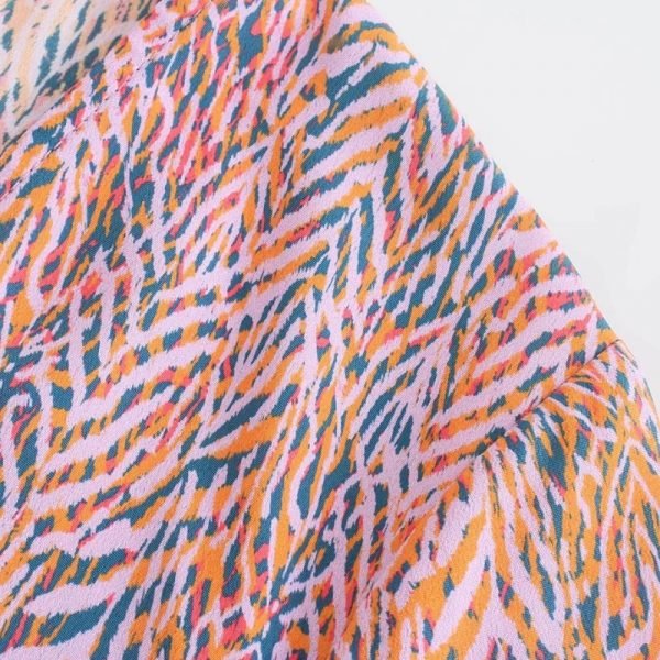 Hot Sale Women Geometric Print Knot Decoration Mini Dress Female Long Sleeve...