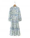 New Spring Women Elegant Floral Print Sashes Shirt Dress Female Long Sleeve...
