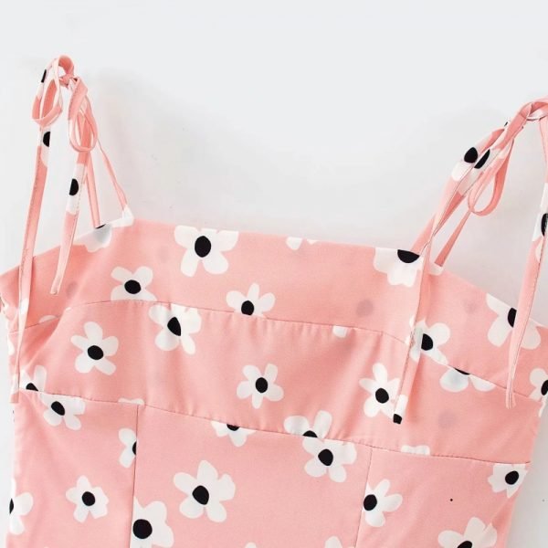 Summer Women Flower Print Deep V Neck Lace Up Bow Midi Dress Female Short...