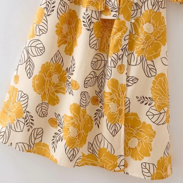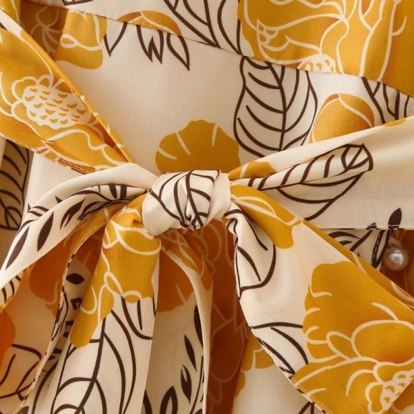 New Spring Women Elegant Floral Print Sashes Shirt Dress Female Long Sleeve...