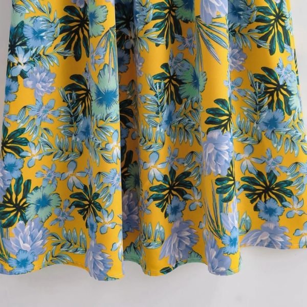 Summer Women Flower Print Deep V Neck Lace Up Bow Midi Dress Female Short...