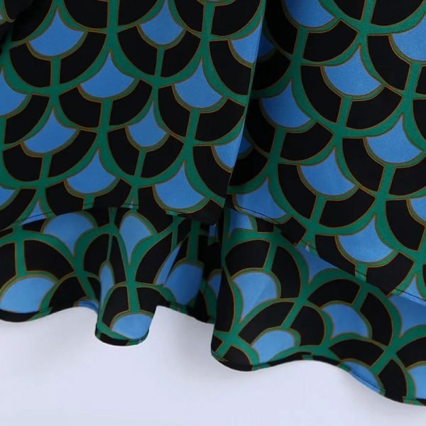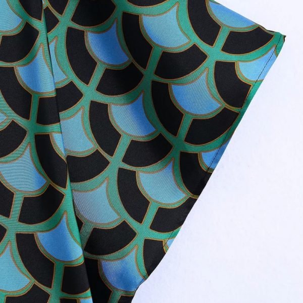 Hot Sale Women Geometric Print Knot Decoration Mini Dress Female Long Sleeve...