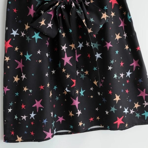 Hot Sale Women Geometric Print Knot Decoration Mini Dress Female Long Sleeve...