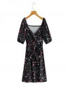 Summer Women Flower Print Deep V Neck Lace Up Bow Midi Dress Female Short...