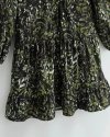 Hot Sale Women Geometric Print Knot Decoration Mini Dress Female Long Sleeve...