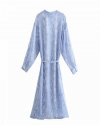 New Spring Women Elegant Floral Print Sashes Shirt Dress Female Long Sleeve...