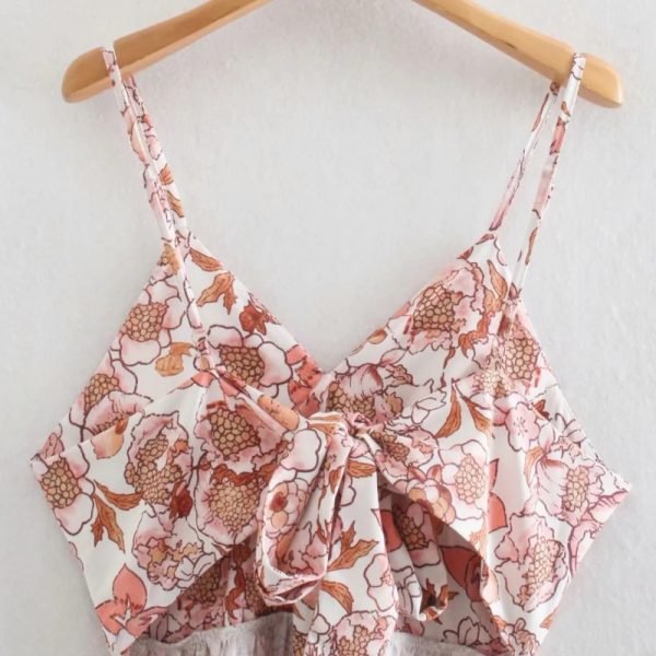 Summer Women Vintage Paisley Print Splicing Knitted Suspender Blouse Casual...