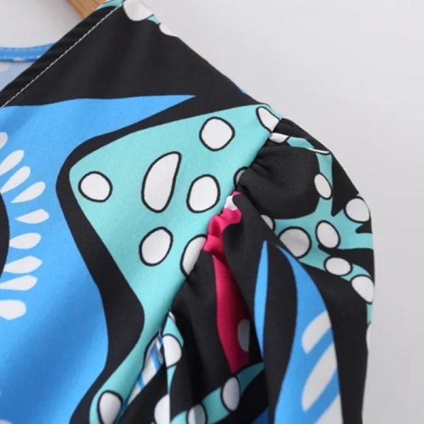 Hot Sale Women Geometric Print Knot Decoration Mini Dress Female Long Sleeve...