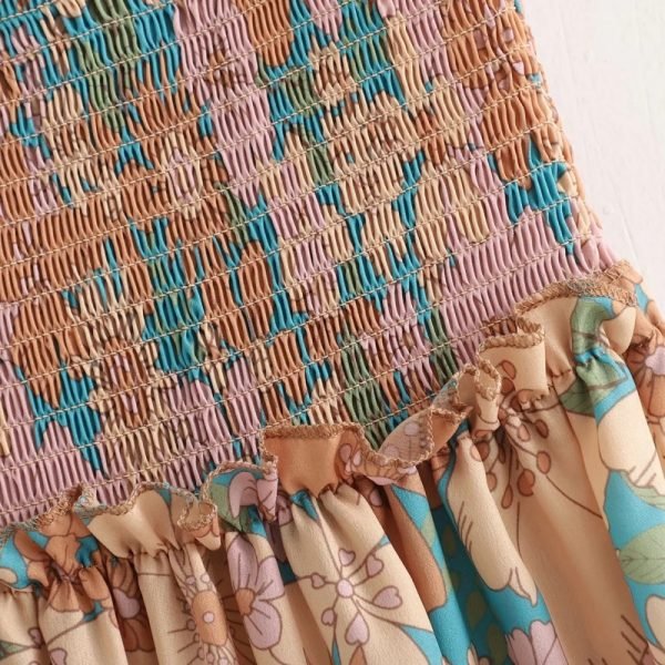 Summer Women Flower Print Deep V Neck Lace Up Bow Midi Dress Female Short...