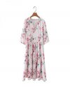 Summer Women Flower Print Deep V Neck Lace Up Bow Midi Dress Female Short...