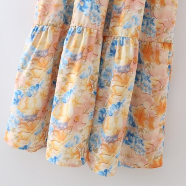Summer Women Flower Print Deep V Neck Lace Up Bow Midi Dress Female Short...