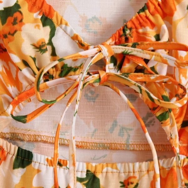Summer Women Flower Print Deep V Neck Lace Up Bow Midi Dress Female Short...