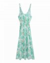 Summer Women Flower Print Deep V Neck Lace Up Bow Midi Dress Female Short...