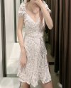 Summer Women Flower Print Deep V Neck Lace Up Bow Midi Dress Female Short...