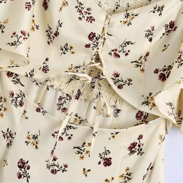 Summer Women Flower Print Deep V Neck Lace Up Bow Midi Dress Female Short...