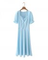 Cheap Dresses, Buy Quality Women's Clothing Directly from China Suppliers:Summer Women Square Collar Pleating Blue A Line Dress Female Puff Sleeve Clothes Leisure Lady Loose Vestido D7929Enjoy ?Free Shipping Worldwide! ?Limited Time Sale ?Easy Return.