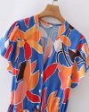Summer Women Flower Print Deep V Neck Lace Up Bow Midi Dress Female Short...