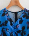 Summer Women Flower Print Deep V Neck Lace Up Bow Midi Dress Female Short...