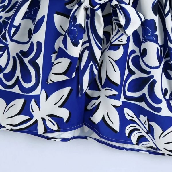 Hot Sale Women Geometric Print Knot Decoration Mini Dress Female Long Sleeve...