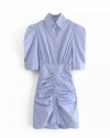 Cheap Dresses, Buy Quality Women's Clothing Directly from China Suppliers:Women Slim Pleated Striped Mini Shirt Dress Female Puff Sleeve Clothes Casual Lady Vestido D7526Enjoy ?Free Shipping Worldwide! ?Limited Time Sale ?Easy Return.