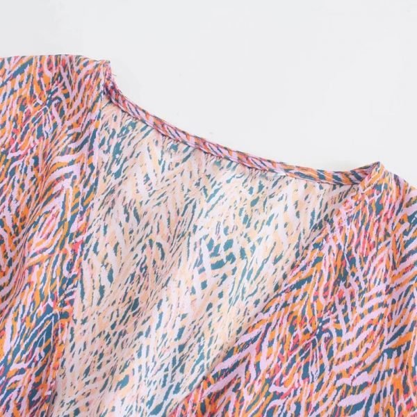 Hot Sale Women Geometric Print Knot Decoration Mini Dress Female Long Sleeve...