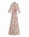New Spring Women Elegant Floral Print Sashes Shirt Dress Female Long Sleeve...