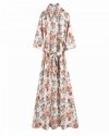 New Spring Women Elegant Floral Print Sashes Shirt Dress Female Long Sleeve...