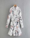 New Spring Women Elegant Floral Print Sashes Shirt Dress Female Long Sleeve...