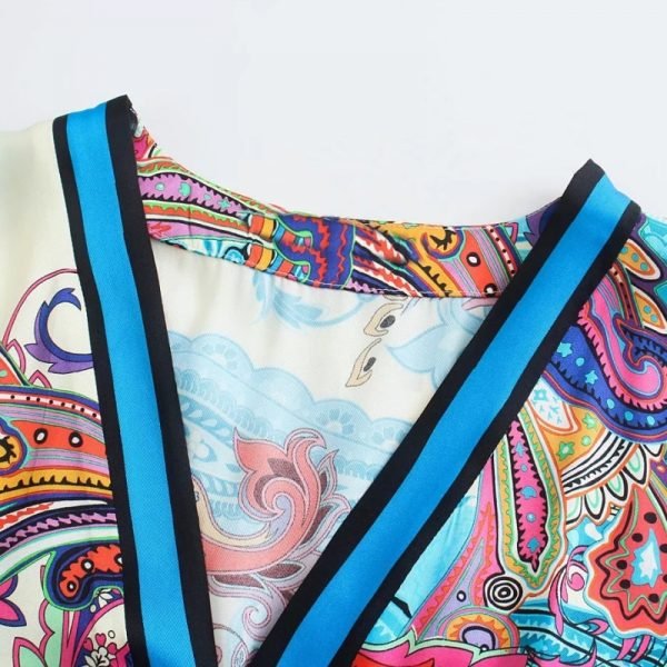Summer Women Flower Print Deep V Neck Lace Up Bow Midi Dress Female Short...