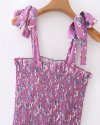 Summer Women Flower Print Deep V Neck Lace Up Bow Midi Dress Female Short...