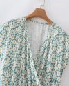 Summer Women Flower Print Deep V Neck Lace Up Bow Midi Dress Female Short...