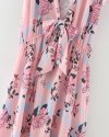 Summer Women Flower Print Deep V Neck Lace Up Bow Midi Dress Female Short...