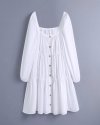 Cheap Dresses, Buy Quality Women's Clothing Directly from China Suppliers:Summer Women Square Collar Single Breasted Pleated Mini Dress Female Nine Quarter Sleeve Clothes Casual Lady Loose Vestido D7555Enjoy ?Free Shipping Worldwide! ?Limited Time Sale ?Easy Return.