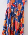 Summer Women Flower Print Deep V Neck Lace Up Bow Midi Dress Female Short...