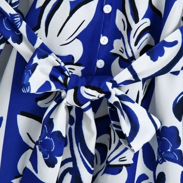 New Spring Women Elegant Floral Print Sashes Shirt Dress Female Long Sleeve...